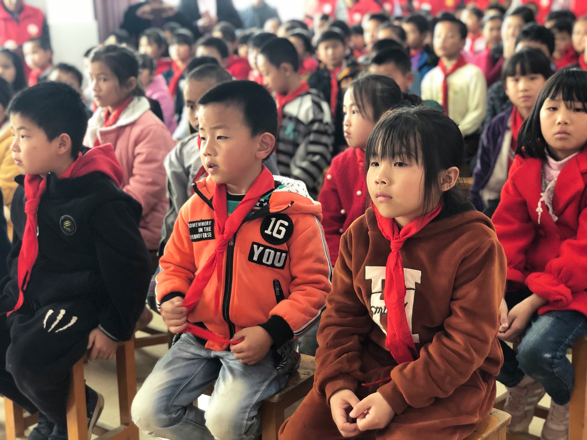 近3个小时的车程,迎接我们的是孩子们熟悉的笑脸。这座泉州市海拔最高的学校,现有7个教学班,学生173人,教师15人,贫乏的教学环境下,孩子们对知识的渴望闪烁在一双双无邪的眼睛里,这一份质朴格外令人动容。捐赠仪式上,火炬电子党支部书记杜学堂先生代表公司将爱心善款捐赠给学校,也代表所有爱心跑友传递对学生们的祝福。