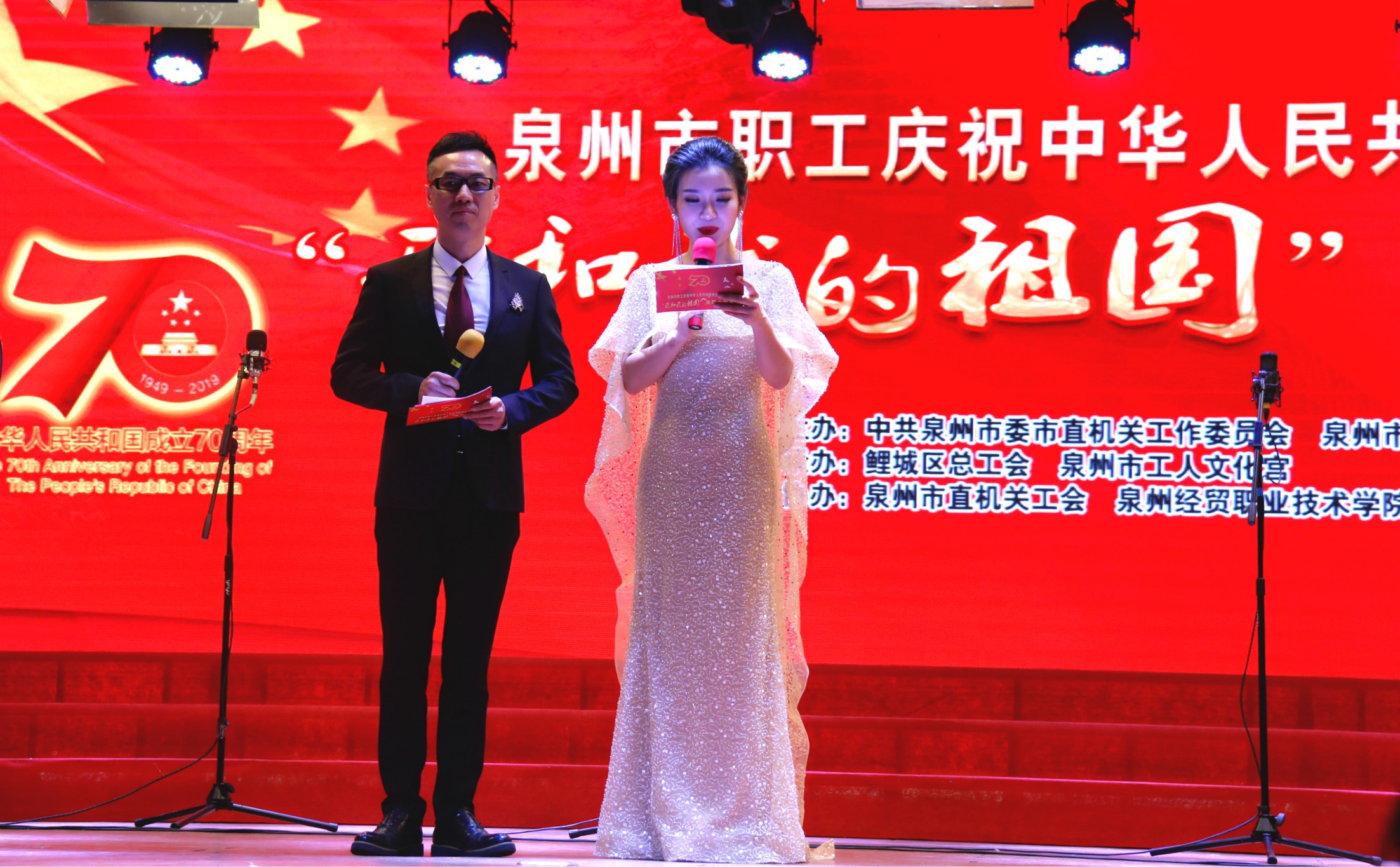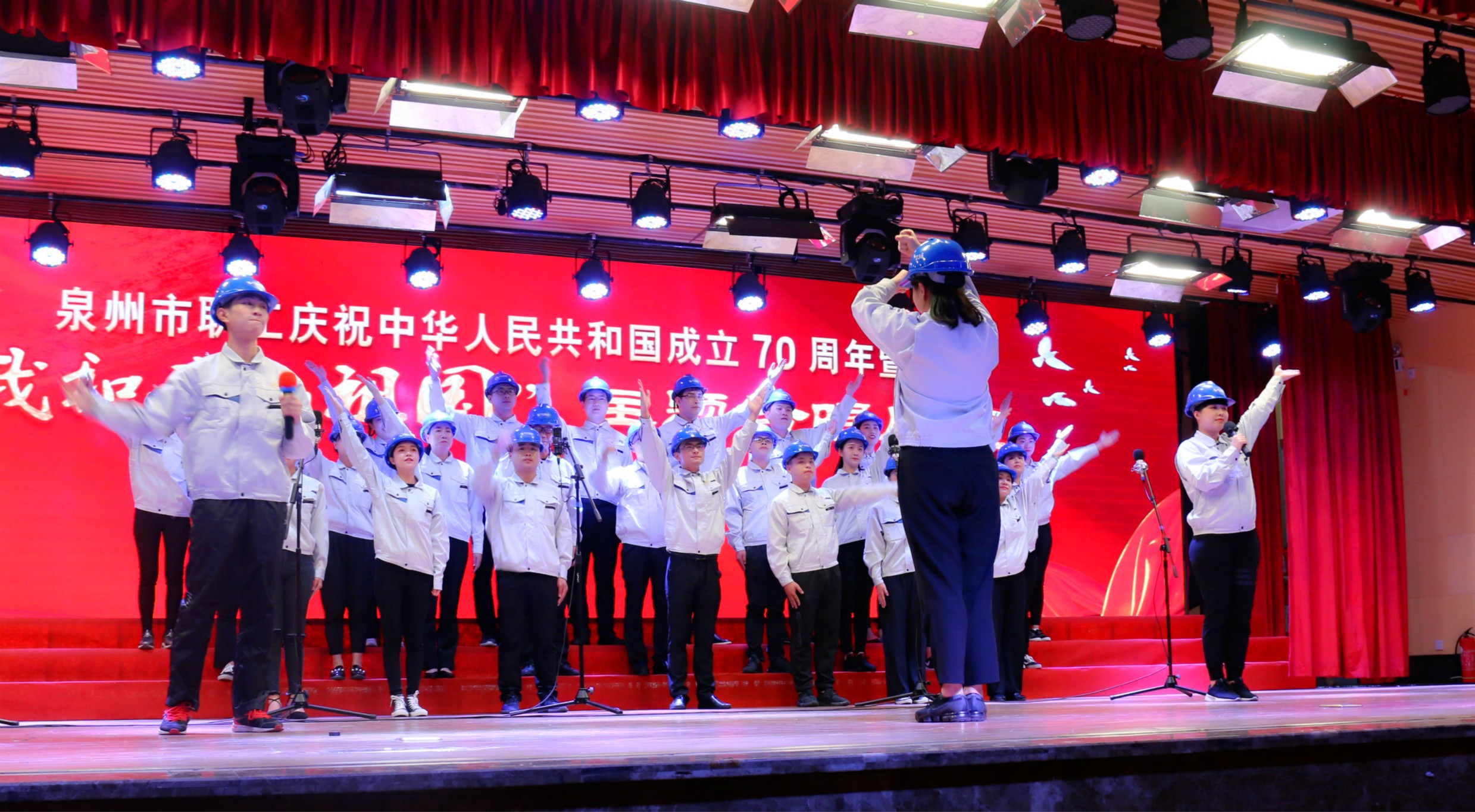 为庆祝中华人民共和国成立70周年,由中共泉州市委市直机关工委、泉州市总工会、泉州市文学艺术界联合会等部门联合主办,鲤城区总工会和泉州市工人文化宫承办的“我和我的祖国”主题合唱展演于9月19日在泉州经贸职业技术学院举办,火炬电子合唱团参与本次汇演。