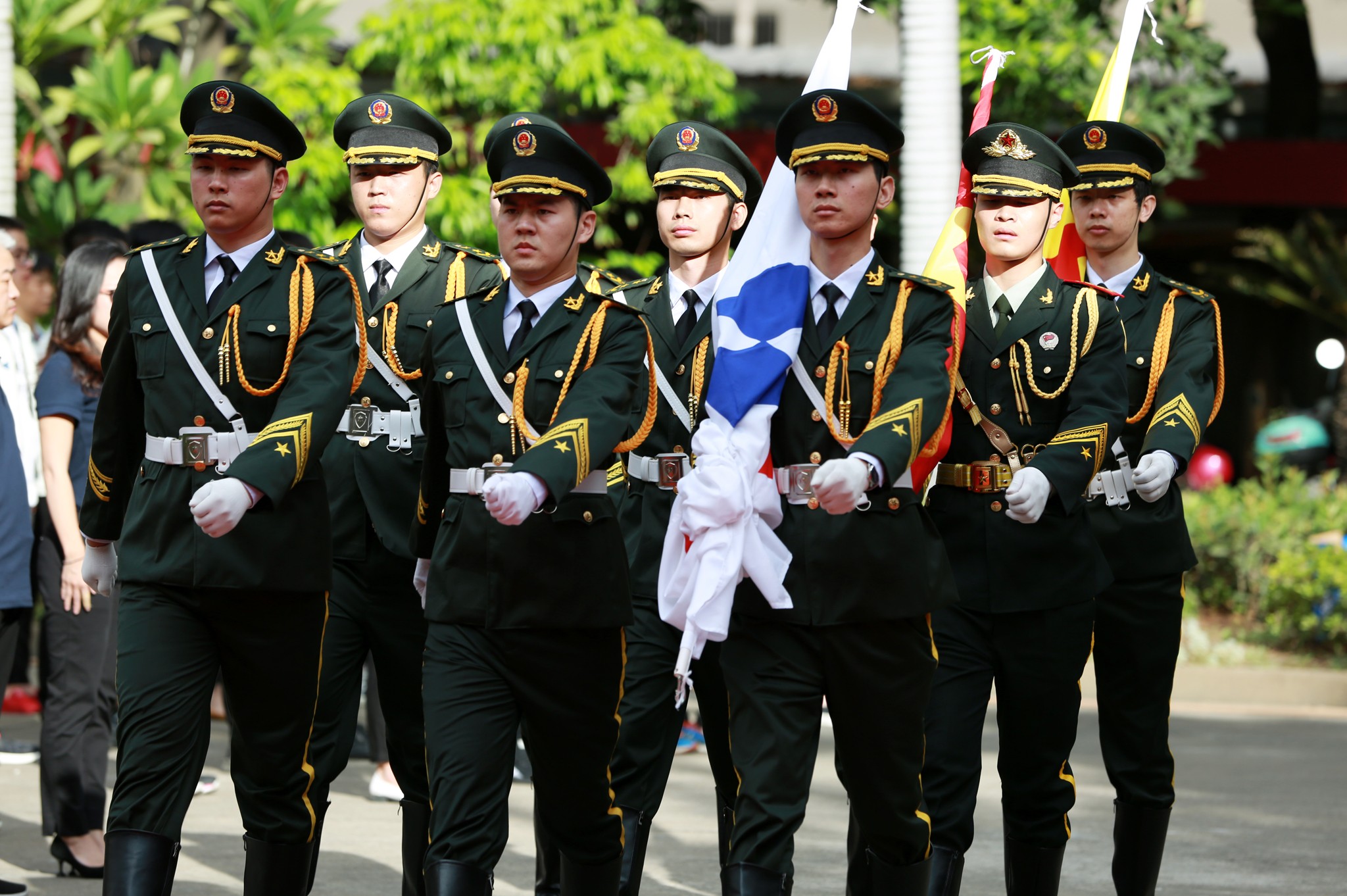 上午8时,意气风发的护旗队迈着矫健的步伐走向升旗台,挂旗、甩旗、升旗,伴随着激昂雄壮的国歌声,全体人员排着整齐的队列,肃穆驻立,注视着鲜艳的五星红旗冉冉升起,迎风飘扬。升旗仪式结束后,全体人员面向国旗行注目礼,齐唱国歌,抒发心中激荡的爱国之情。