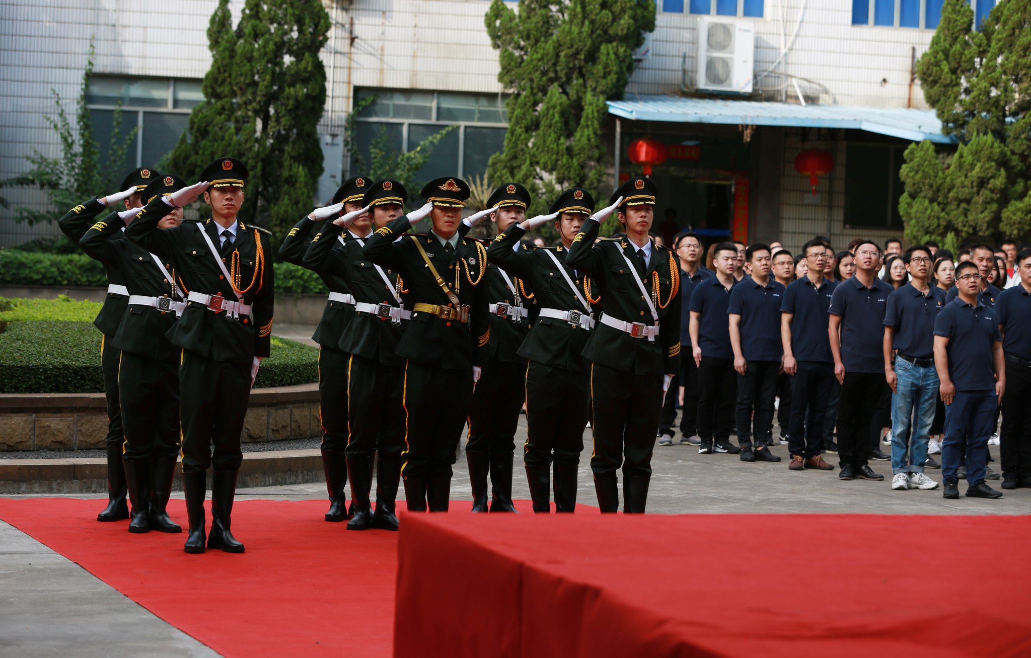 为热烈庆祝中华人民共和国成立70周年,弘扬爱国主义精神,9月30日,火炬电子在公司第一厂区举行了庄严的升旗仪式。