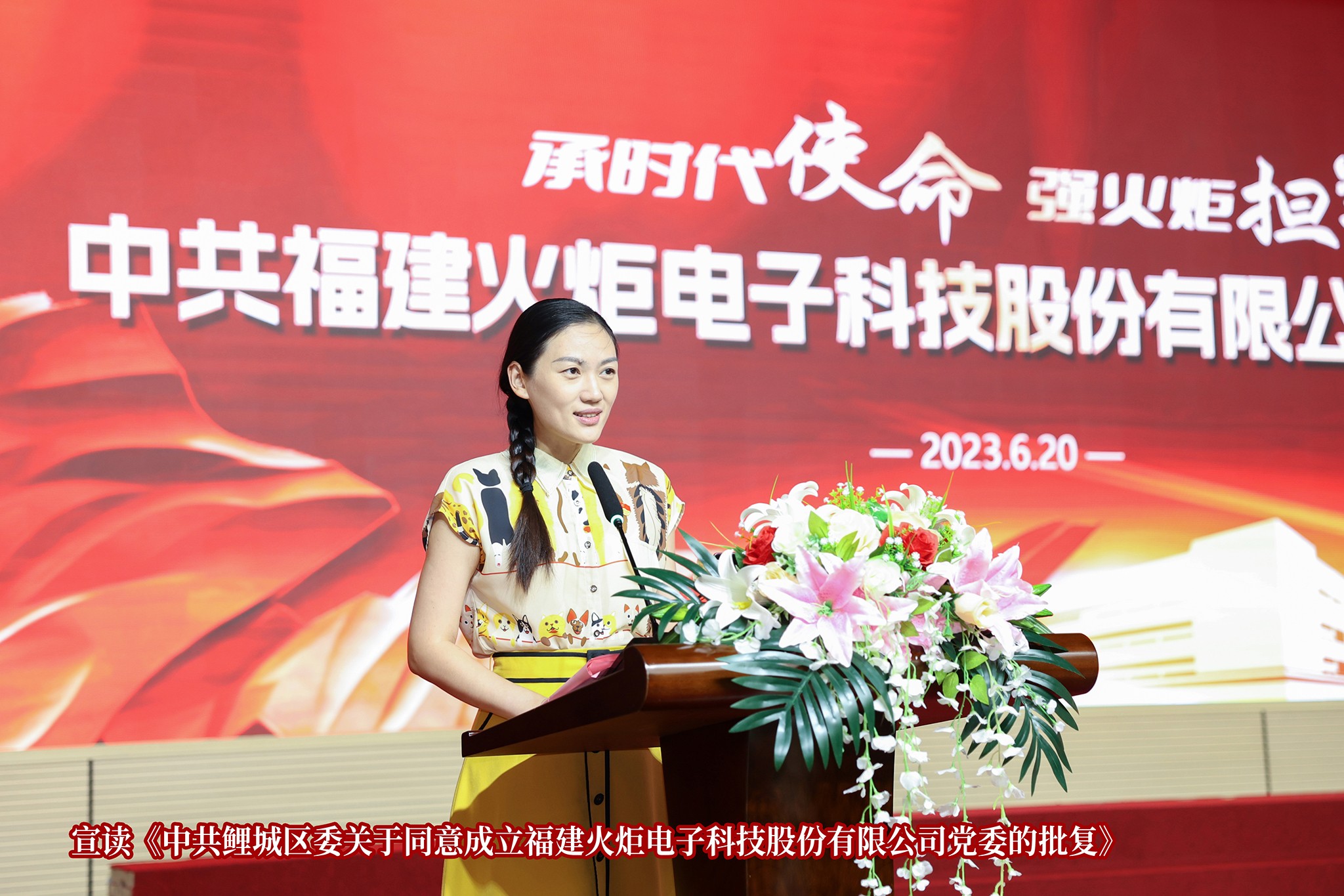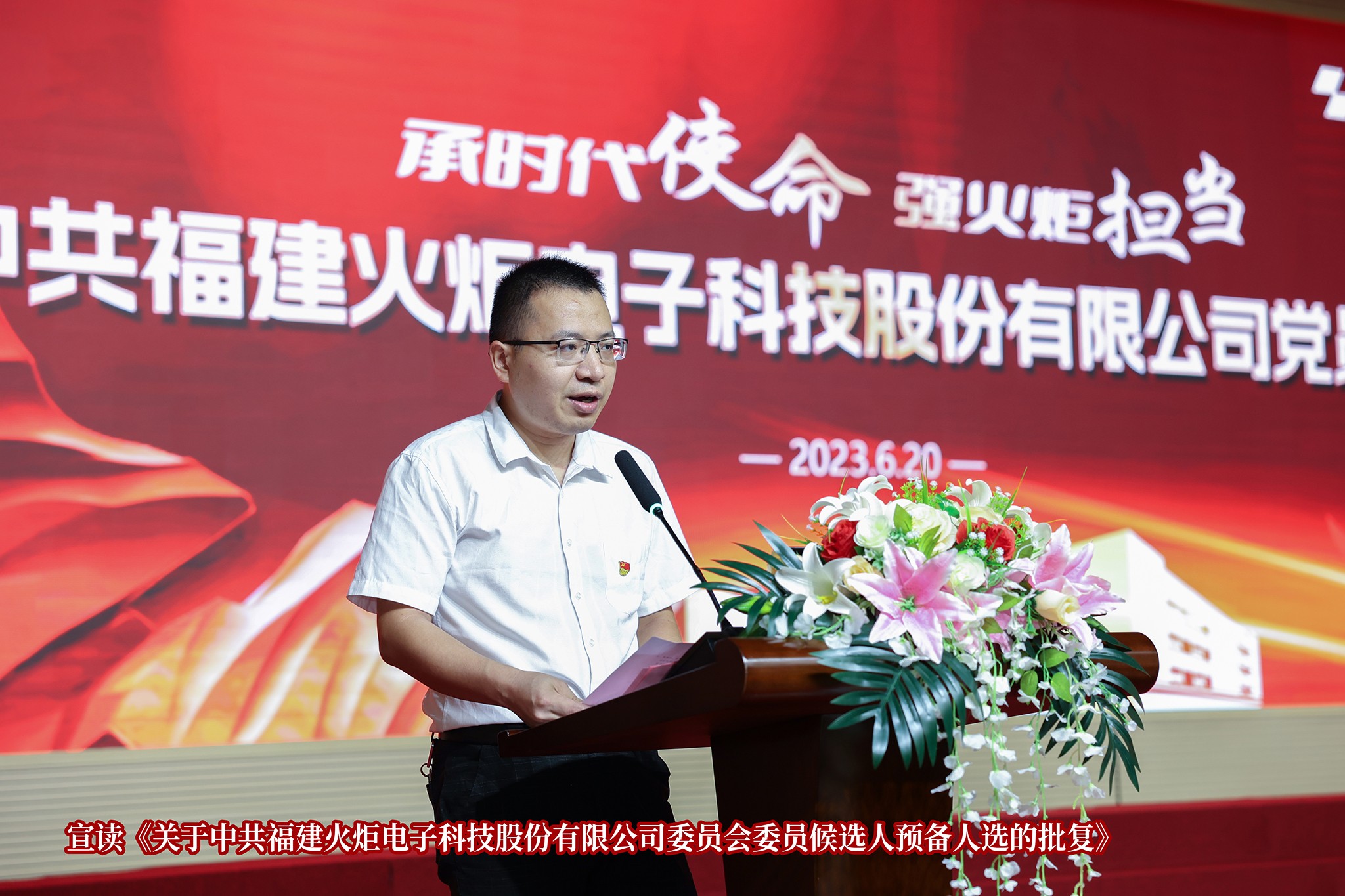 6月20日,中共福建火炬电子科技股份有限公司党员大会隆重召开,江南街道党工委书记连洁,鲤城区委组织部副部长、区委非公企业和社会组织工委书记陈竞芳等领导及公司全体党员出席此次会议。